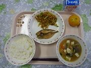 牛乳 ごはん 小あじのカリカリ揚げ カレーきんぴら 味噌けんちん汁 みかん 炒り大豆