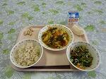 牛乳 ごはん ザーサイ豆腐 青梗菜のスープ 巨峰 アーモンド小魚