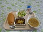 牛乳 コッペパン なすのミートグラタン はちみつドレッシングサラダ オニオンスープ プルーン