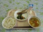牛乳 ごはん ししゃもの唐揚げ ごまあえ みそけんちん汁 梨 炒り大豆
