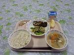 今日の給食は,おからのスコーンです。小麦粉にベーキングパウダー,おから,砂糖,バター,牛乳を混ぜ合わせています。おからは豆腐を作る過程でしぼった後のものを言います。栄養価が高いです。大豆の恵みを感じるメニューです。