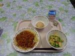 牛乳 トマトソーススパゲティ じゃがいもの味噌サラダ おからスコーン