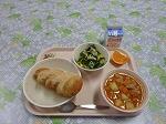 今日は6年生のリクエストの揚げパンを出します。おかずはポークビーンズです。白いんげん豆を入れたトマト煮です。じっくり煮込んでいますので,食べやすいと思います。皆さん,しっかり食べてください。