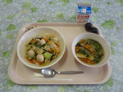 牛乳 中華丼 ワンタンスープ 巨峰 大豆小魚