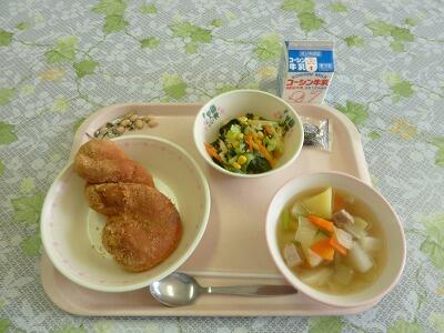牛乳 揚げパン ポトフ 海藻サラダ プルーン 大豆小魚
