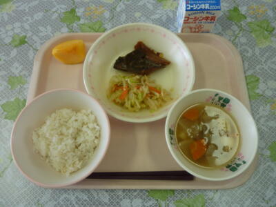 牛乳 ごはん さばの味噌煮 ゆず和え けんちん汁 柿