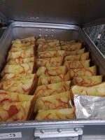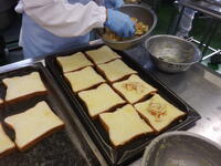 今日の給食は、旬のりんごをたっぷり乗せた『アップルトースト』です。
