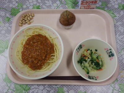 牛乳 スパゲティミートソース ハニーマスタードドレッシングサラダ