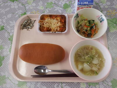 牛乳 はちみつパン ポテトミートグラタン しめじ入りサラダ