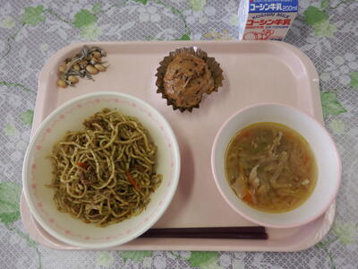 パンにはさむのを忘れた児童が多かったので、今回は主食としてソース焼きそばを出しました。