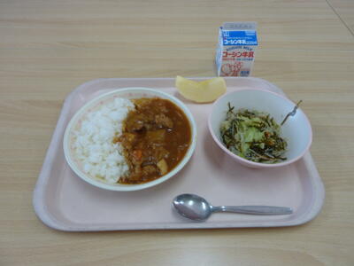 ポークカレーライス・すき昆布サラダ・りんご・牛乳