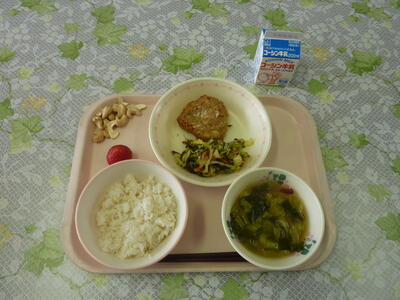 ごはん・すずきの唐揚げねぎソースかけ・おかか和え・かぶのみそ汁・ミルクカシューナッツ