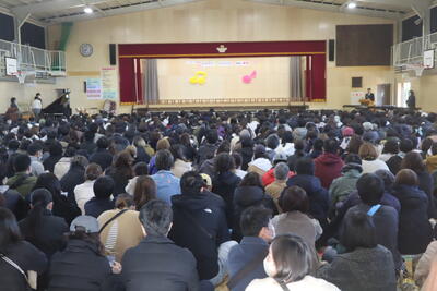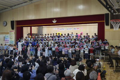 今日は保護者向けのレインボー音楽会。朝からたくさんの保護者に来校いただきました。入れ替え制とはいえ、3学年の保護者が体育館に入るため、発表学年優先席も少し後ろになってしまうほど。