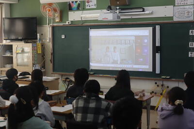 これまでに「受け継ごう地域の宝」をテーマに調べてきたものを今日のロング昼休み、ついに体育館で全校児童向けに発表をしました。