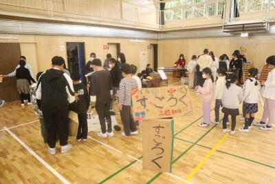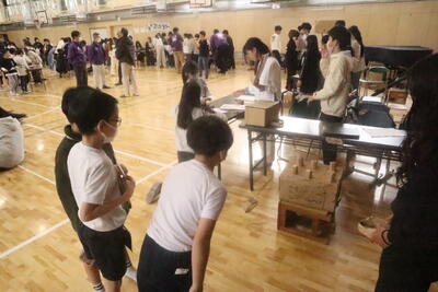 11月5,7日に発表した4年生向けのものから、各教室から体育館へと会場も対象児童の規模も大きくなりました。4年生向け発表では保存会の方、伝承クラブ、UDC2、地域の方々からフィードバックをいただきブラッシュアップしてきています。再度、西光院を訪れてインタビューをしたり、電話で伝承クラブの方や柏市観光協会に問い合わせたりもしています。屋台方式の発表会はどのブースも大盛況。舞体験、クイズ、お面作り、すごろくなどなど楽しみながら地域のことを学べるお祭りのようなイベントとなりました。