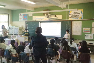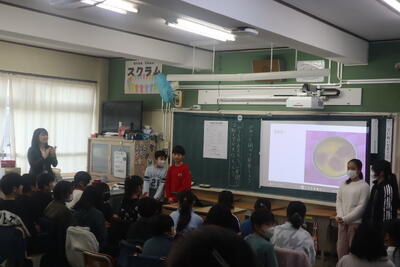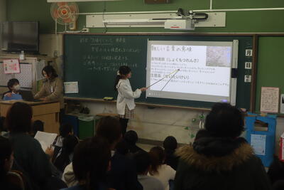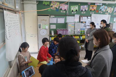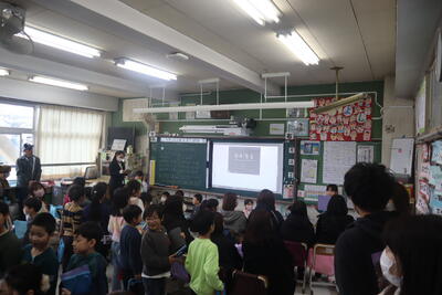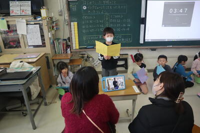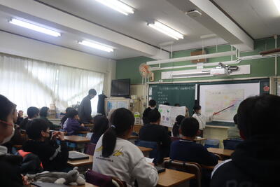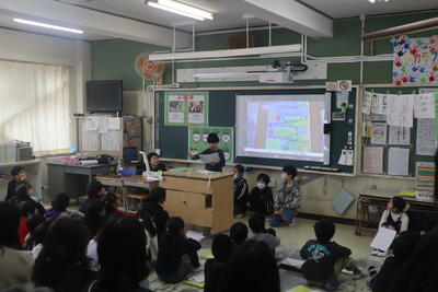 昨日、今日と総合的な学習の時間のプレ発表会が続いています。学習でこれまでにお世話になった皆さんをお招きして、これまでの成果を見ていただきました。