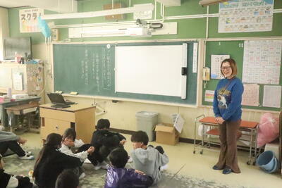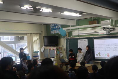 1年生は先生にインタビューしたことを発表。
