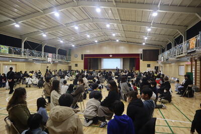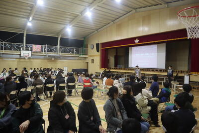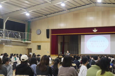 昨日何してた?好きな曜日は?などから、自分を大切にするってどんなこと?小学校生活は100点満点で何点?など今までじっくり考えたことのないような質問に対して、大人も子供も一生懸命話していました。こんなに多くの大人と話す経験は初めてのはずの6年生が、自分の考えをしっかりと話していてびっくりしました。体育館がとても和やかな雰囲気になり安心して話せる場となりました。終わった後には「楽しかった」という感想も。
