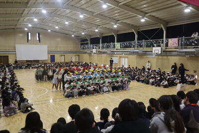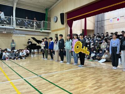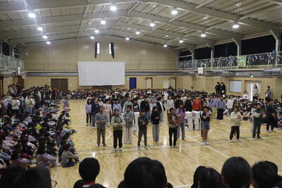 最後は6年生。各学年にメッセージを伝え、「ふるさと」をきれいな声で響かせました。