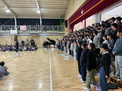 6年生が入場する前に全校合唱のリハーサル。