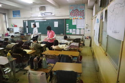 同じ時間帯には2月から延期した1年生2クラスの授業参観。