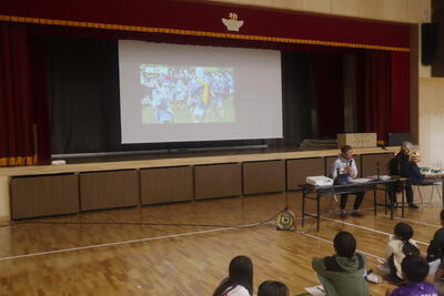 昨日何してた?好きな曜日は?などから、自分を大切にするってどんなこと?小学校生活は100点満点で何点?など今までじっくり考えたことのないような質問に対して、大人も子供も一生懸命話していました。こんなに多くの大人と話す経験は初めてのはずの6年生が、自分の考えをしっかりと話していてびっくりしました。体育館がとても和やかな雰囲気になり安心して話せる場となりました。終わった後には「楽しかった」という感想も。