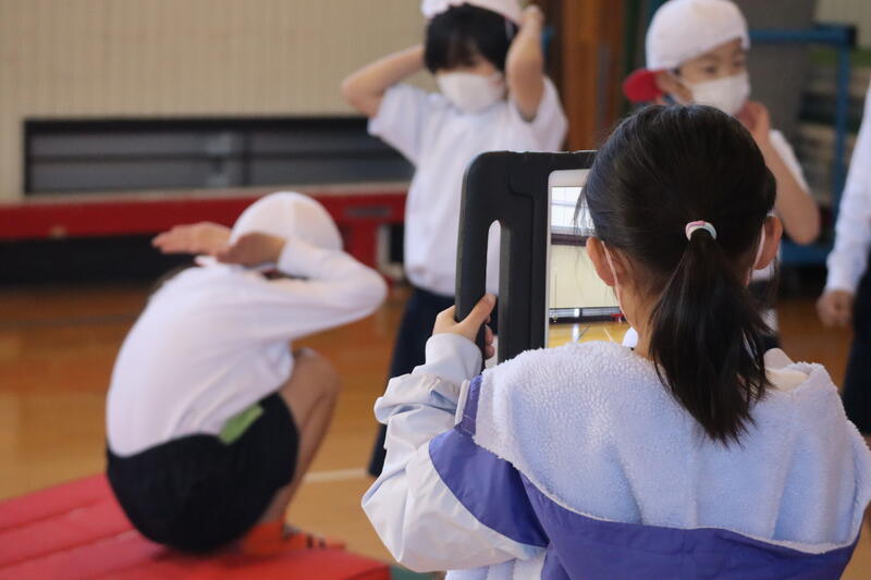 #1年生#体育#マットを使って#運動#見学者は#映像班で#活躍中