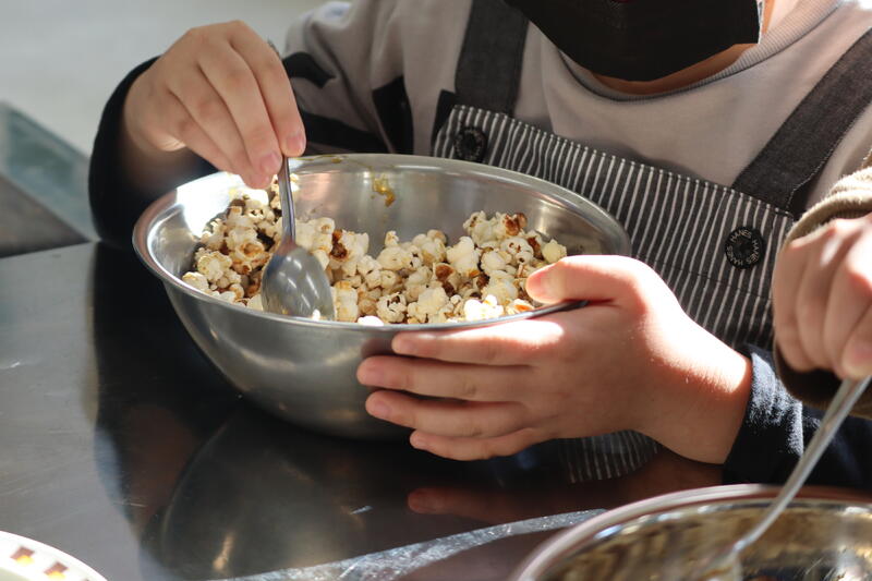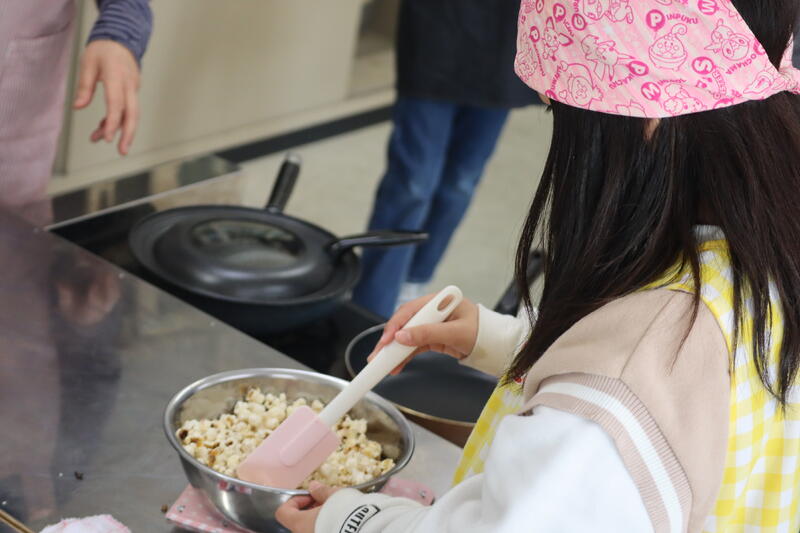 #調理実習#ポップコーン作り#炒めて#混ぜて#決め手は#オリジナルフレーバー#子どもの発想はすごい#映画館での販売希望