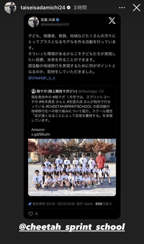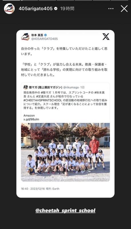 #柏第七小学校#部活動地域移行化#実践#陸上マガジン#1月号にて掲載#special_thanks#秋本真吾#定道大成#cheetah_sprint_school