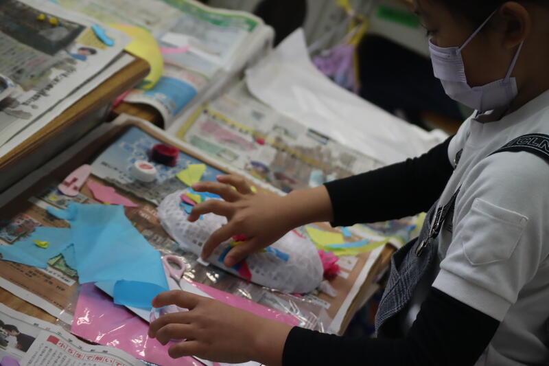 #2年生#図工#ちぎって#はって#まるめて#世界にひとつだけの#お面
