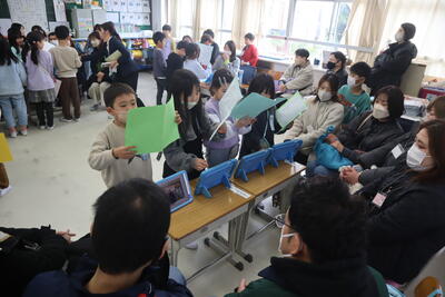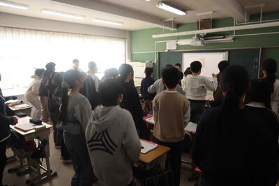 同じ時間帯には2月から延期した1年生2クラスの授業参観。