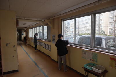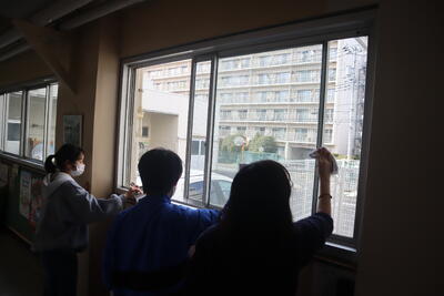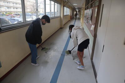 みんなが気持ちよく使えるようにと下学年のことを考えながら、児童用トイレまでの動線となる昇降口の掃除も行いました。さらには、保護者待機場所となる体育館の清掃も行っていました。当日も気持ちよく、そしてきれいにつかってもらえるといいですね。