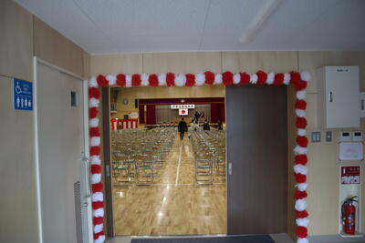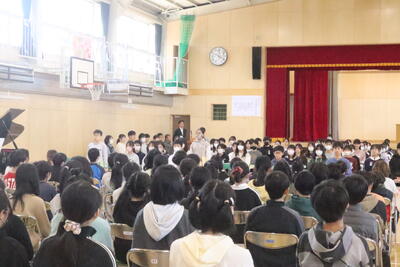 6年生が入場する前に全校合唱のリハーサル。