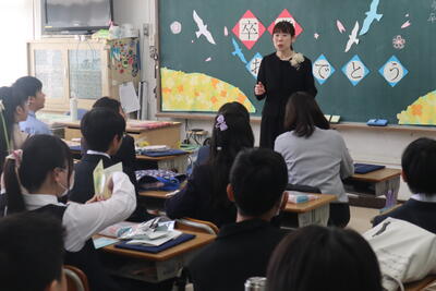 キャリアとは「自分の生きる道」であること、自分で選んでいくことだと教わりました。身近な大人、社会人として親、先生がいます。そこで先生にインタビュー。どうして先生という職業を選んだのか、担任の先生や教頭先生、専科の先生からお話を聞きました。同じ先生でもキャリアは様々、興味津々に聞いていました。