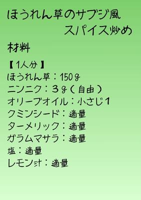 「ほうれん草のサブジ風スパイス炒め」