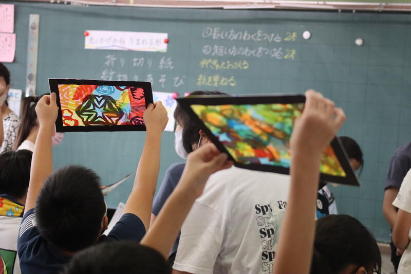 #5年生#図工#特別講師#2日目です#来校#造形の#スペシャリスト#自由に切って#組み合わせて#透かしてみると#驚きの世界が#みんなちがって#みんないい#アートの世界