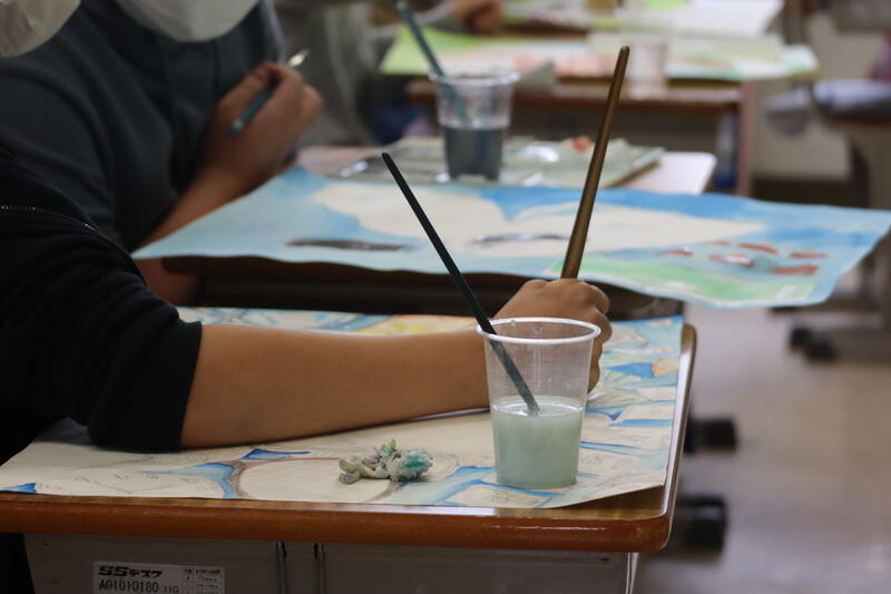 #6年生#図工特別授業#仕上がってきました#うすく#色を重ねる#ポイントです#ありがとうございました