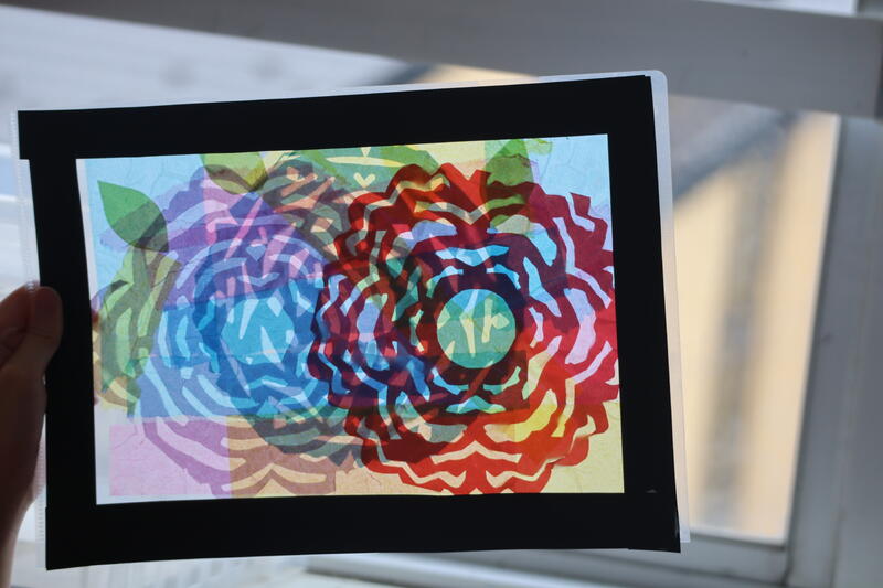 #5年生#図工#特別講師#2日目です#来校#造形の#スペシャリスト#自由に切って#組み合わせて#透かしてみると#驚きの世界が#みんなちがって#みんないい#アートの世界