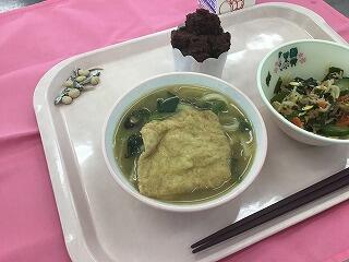 一覧へ きつねうどん 日時 2026年02月03日(火) 公開対象 給食 詳細 きつねうどん,ツナとわかめの和え物,ココア入り蒸しパン,いり大豆と小魚 2月6日は,初午の日です。この日は,油揚げを使ったいなり寿司を食べたり,奉納したりして,無病息災や運気アップを祈願する風習があります。今日は,油揚げを大きな釜でコトコトと甘辛く煮て,温かいうどんの上にのせていただきます。 作成者 柏第七小学校管理者 更新日時 2026-02-03 12:13:14