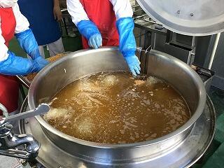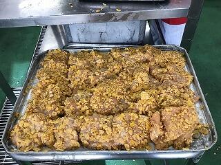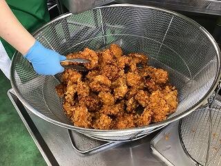 今日は,調理員さんが唐揚げを作っている様子(動画)を6年4組の子どもたちに見てもらいました。下味付けから配缶まで5人の調理員さんが関わっていることや油で揚げている音に驚いている様子でした。和え物も好評でした。