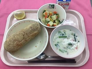 きなこ揚げパン,かぶのポタージュ,マセドアンサラダ,はるか