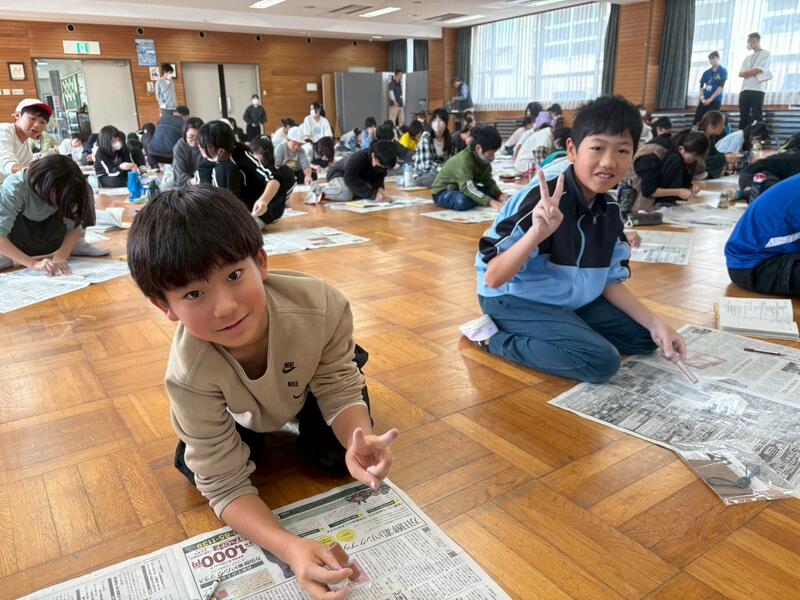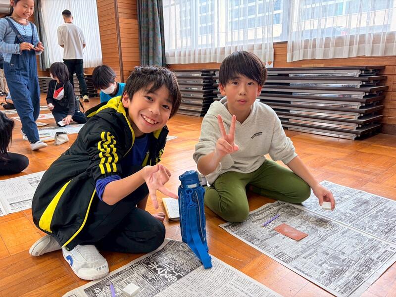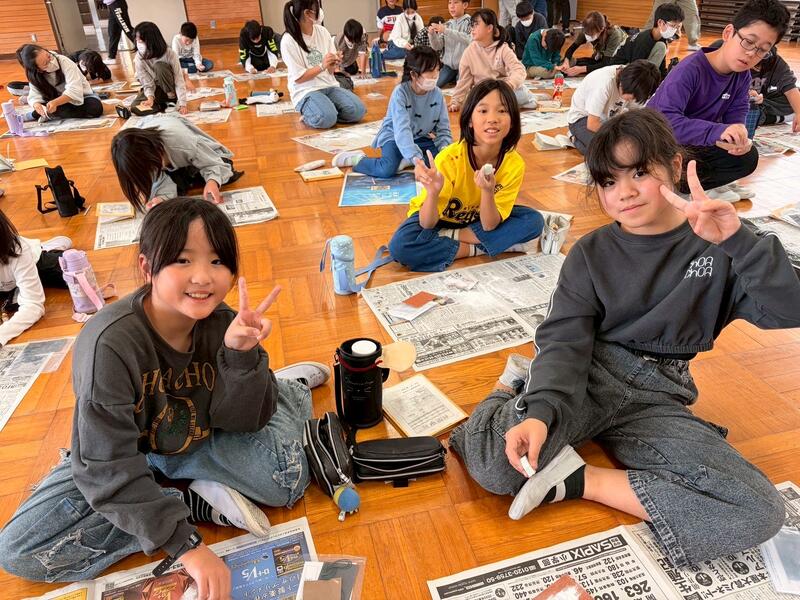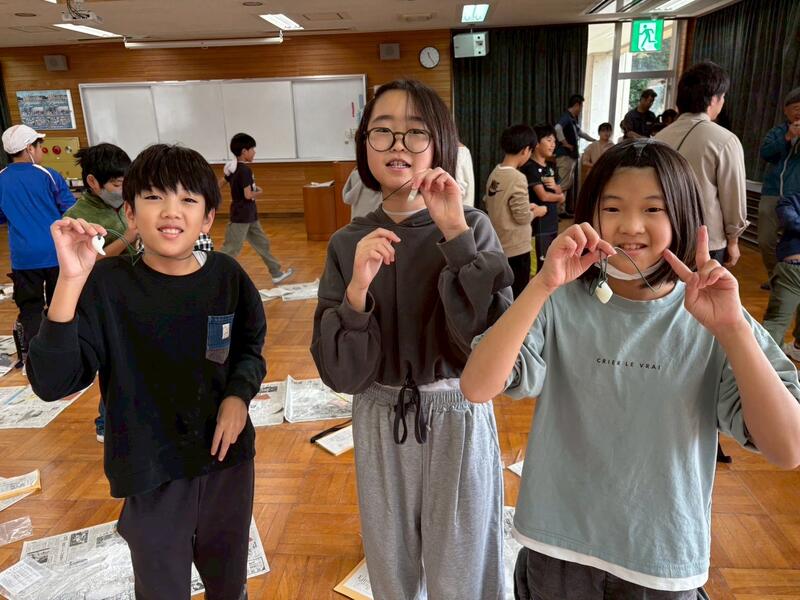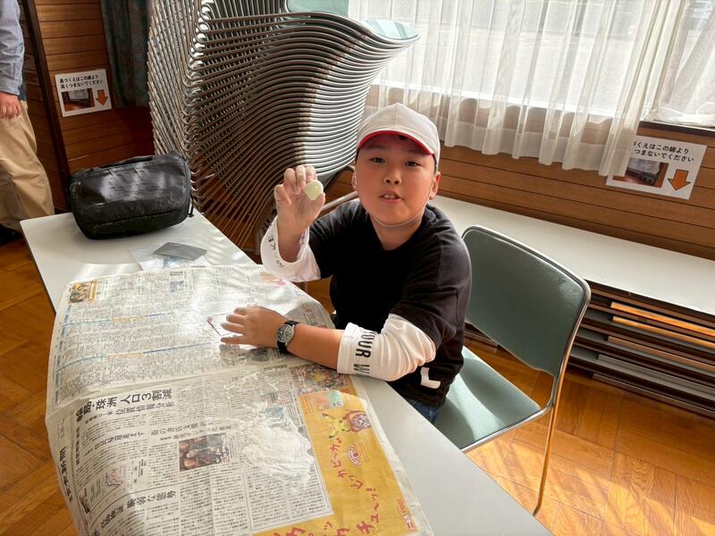 ピッカピカに仕上がった勾玉を手に、子どもたちはご満悦です。