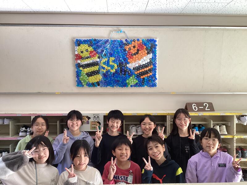 「キャップアートに協力してくれた全校の皆さん。ありがとうございました。おかげで素晴らしい作品ができました。」