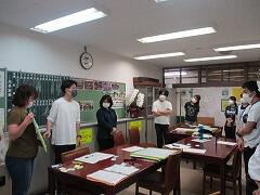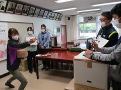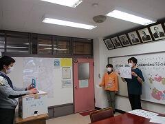 当初は、家庭科室での配付を予定していたのですが、「三密」を防ぐためと、お子様の教室や机の場所を知っていただき、各担任から直接お渡ししたいと考え、各教室での配付としました。