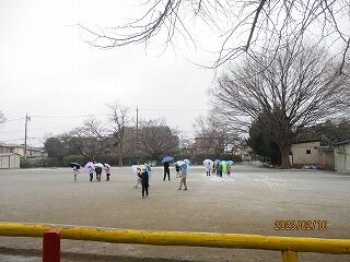 せっかくの雪に,ちょっとでも触れたい! と,2年生が傘をさして校庭に現れました。
