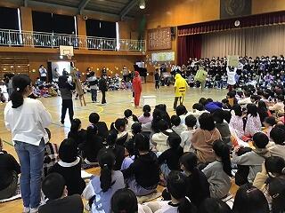 2曲目は,ザードの「負けないで」。舞台で4年生がダンスが盛り上げます。