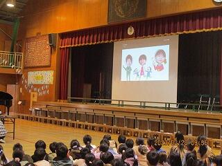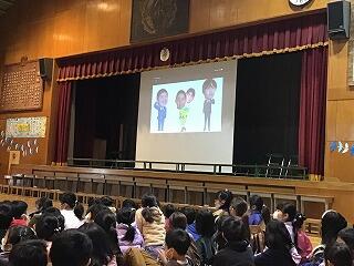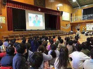 2月の全校朝会も,オンラインで実施しました。