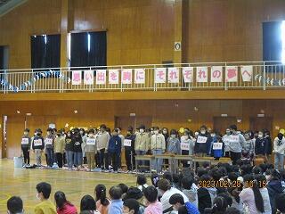 今年は,3年ぶりに体育館に全校が集まって,6年生に「ありがとう」「おめでとう」の気持ちを伝えたいと思います。