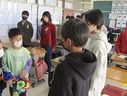 卒業まで16日。今日は,2年生が6年生のために作ったメダルをプレゼントしました。3枚の折り紙を組み合わせて作るかっこいいメダルです。きっと6年生は,「送る会」にこのメダルを身に着けて入場してくれることでしょう。