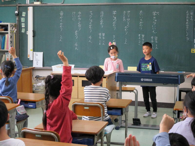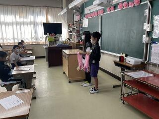 1年生の教室では,転入してきた新しいお友達を歓迎するお楽しみレクが開かれていました。